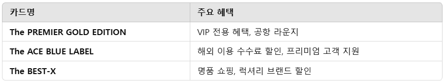 ✔ 프리미엄 카드 사용 시 VIP 혜택 및 공항 라운지 이용 고려