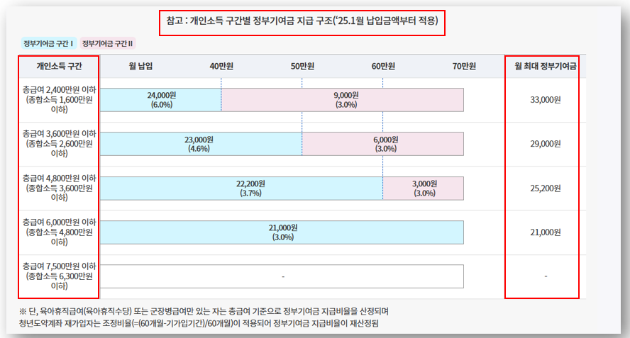 ✅ 정부 기여금 월 최대 3만 3천 원으로 인상