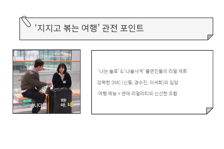 ‘나는 솔로’ 유니버스의 새로운 스핀오프 예능, ‘지지고 볶는 여행’!