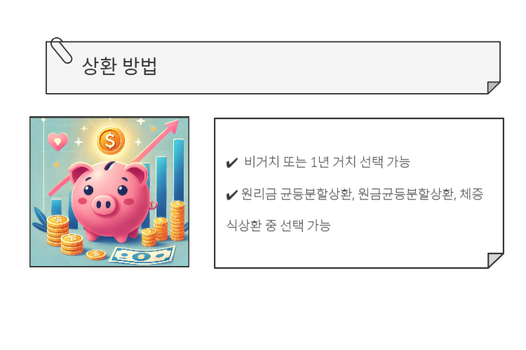 ✔ 원리금 균등분할상환, 원금균등분할상환, 체증식상환 중 선택 가능