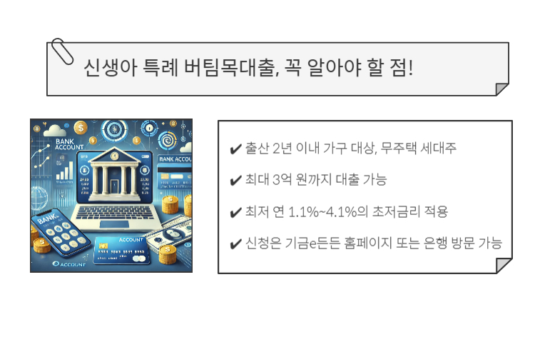 🏡 출산 후 주거 안정이 고민이라면, 신생아 특례 버팀목대출을 적극 활용해 보세요!