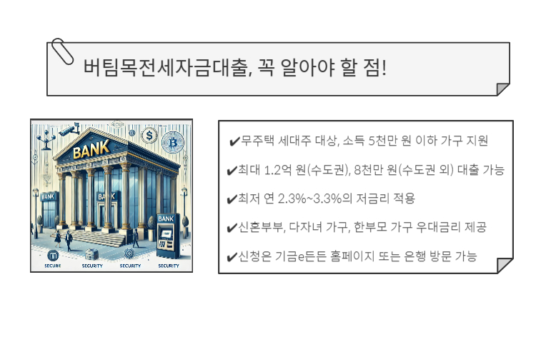 🏡 전세자금이 부담된다면, 버팀목전세자금대출을 적극 활용해 보세요!