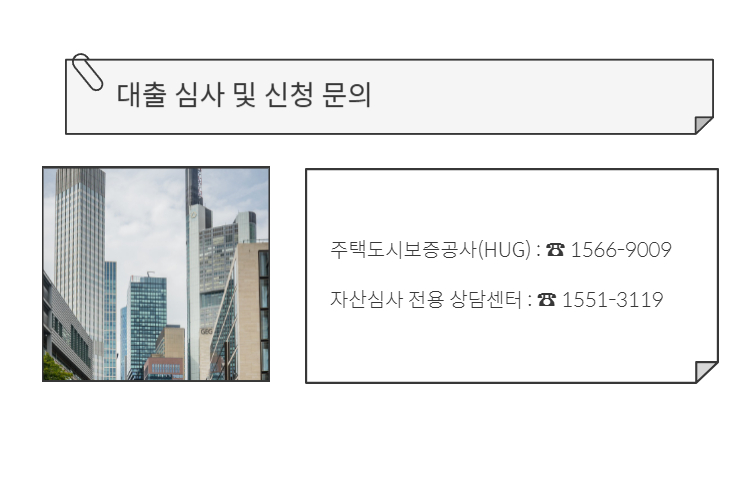 - 주택도시보증공사(HUG) : ☎ 1566-9009