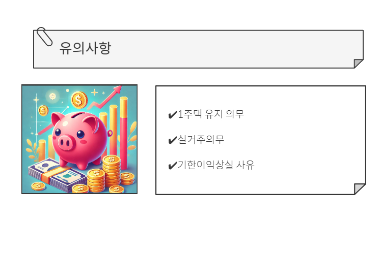 - 대출기간 동안 추가 주택 취득 불가