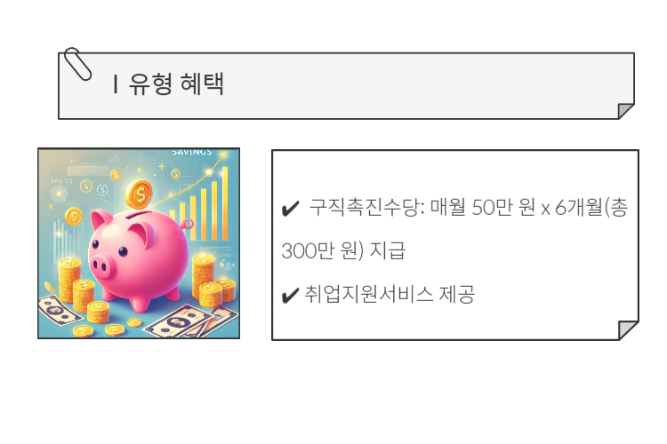 ✔️ 구직촉진수당: 매월 50만 원 x 6개월(총 300만 원) 지급